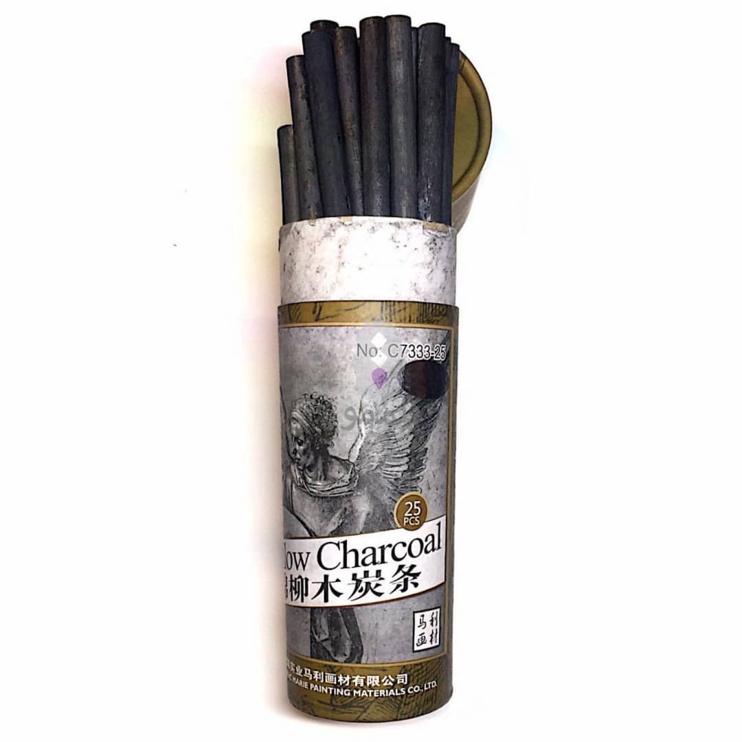 • شامل ۲۵ عدد چوب زغال با ضخامت‌های مختلف برای اجرای خطوط ظریف یا سطوح پهن.