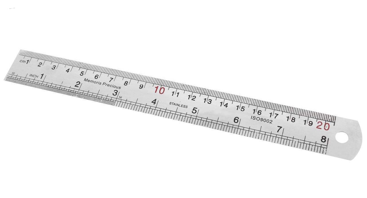 دارای دو مقیاس میلی‌متر/سانتی‌متر در یک لبه و اینچ در لبه دیگر.