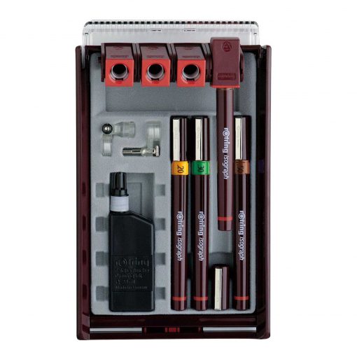 ۴ عدد راپید، کارتریج‌های جوهر (یا جوهر بطری)، گیره پرگار، پاک‌کن (B20)، مغزی اتود HB (بسته به مدل ست)